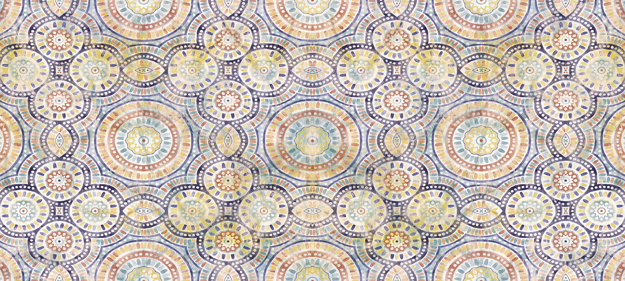 Fototapete ARCHITECTS PAPER "Atelier 47 Watercolour Ornament 1", bunt (gelb, blau, orange), B:6m L:2,7m, Vlies, Tapeten, Vlies, Wand, Schräge, Decke