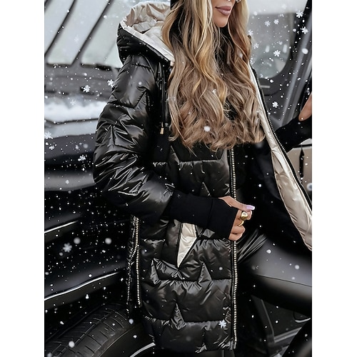 Per donna Cappotto Invernale Giacca Piumino Cappotto Caldo Confortevole Cerniera Tasca Attivo Casual Semplice Vacanza Abbigliamento quotidiano Uscire Weekend Lungo Con Cappuccio Vestibilità comoda