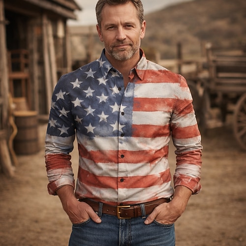 Americano 250 Retrò Vintage Anni '70 Camicia Camicia Aloha Lunghe Hippie Geometrico Etnico Costume Per uomo Mascherata 4 Luglio Feste Giorno dell'Indipendenza Semiquincentenario Adulti Camicia