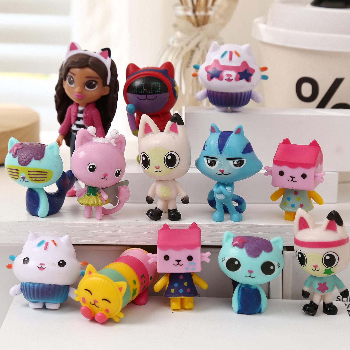13 Stück/Set PVC Gabby Puppenhaus Figur Spielzeug Mercat Cartoon Modell Tiere Lachende Auto Katze Umarmung Gaby Mädchen Puppen Kinder Geburtstagsgesch