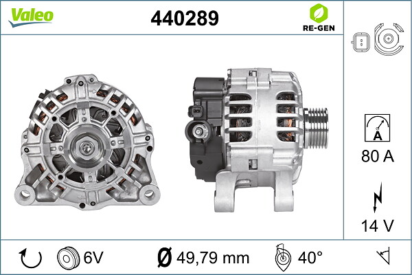 VALEO Generator REMANUFACTURED PREMIUM 440289 14V 80A für PEUGEOT (DF-PSA) CITROËN 9665577680 9651927480 5702-K3