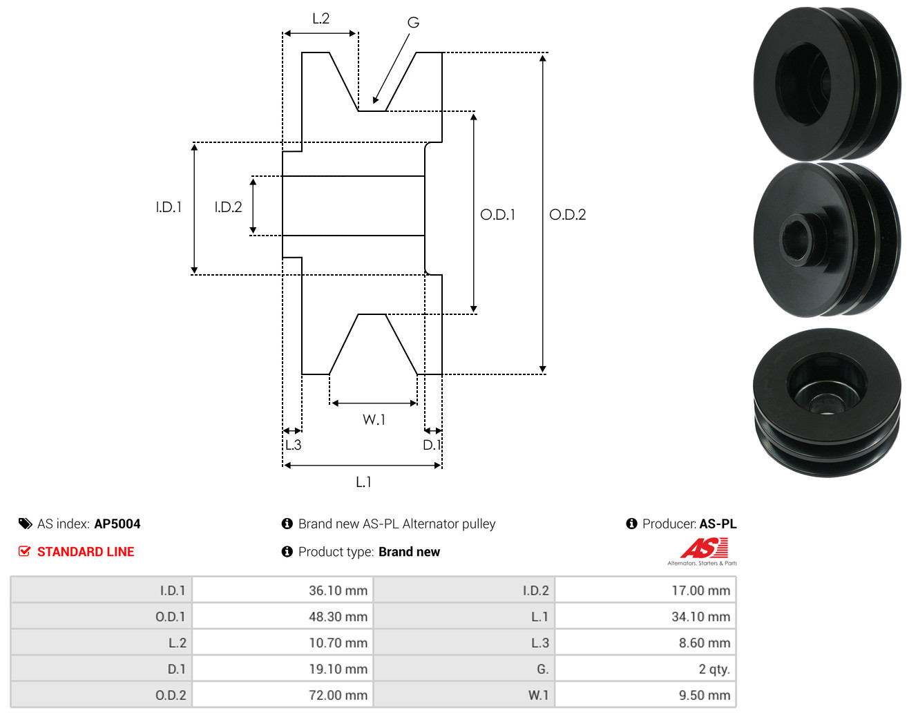 AS-PL Riemenscheibe, Generator Universal für MITSUBISHI ME701549 A629X51570 ME753006 AP5004