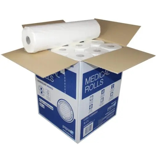 Ärzterollen/Ärztekrepp, hochweiß, 100 % Zellstoff, 2-lagig, perforiert, geprägt, 50x37 cm, 135 Abrisse, 50 m, 9 Rollen