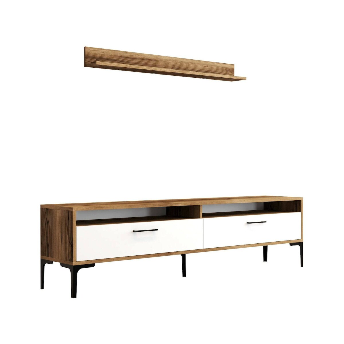 Dmora Wohnzimmermöbel Dkatseri, Modulares Wohnzimmerset, Mehrzweck-Wohnzimmermöbel, Moderner TV-Schrank, 180x35h47 cm, Walnuss und Weiß