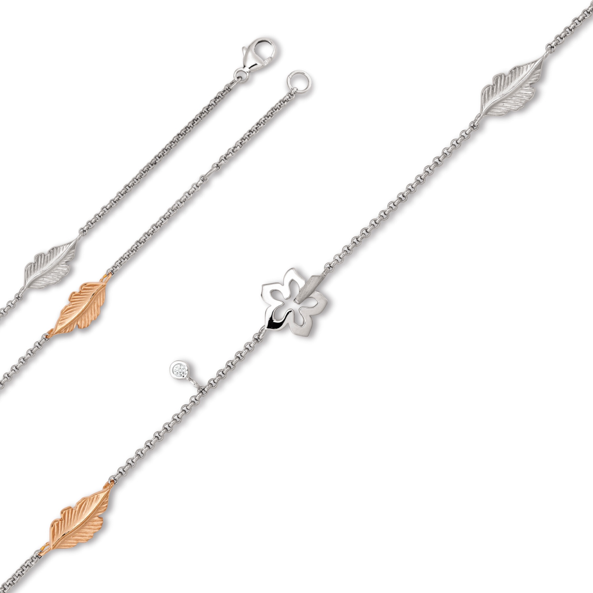 Silberarmband ONE ELEMENT "Zirkonia Feder & Blume Armband aus 925 Silber 19 cm", silber, Armbänder, Mädchen, 19, Damen Silber Schmuck Feder & Blume