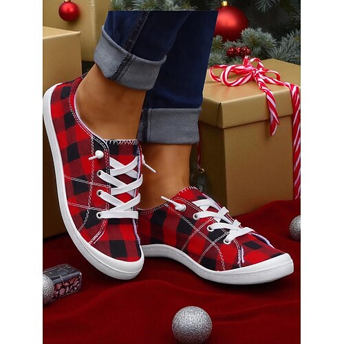pantofole da donna con stampa a fiocco di neve e slip-on per le feste - scarpe slip-on rosse festive con pelliccia sintetica bianca per il comfort invernale, perfette per la mattina di Natale e per l'abbigliamento casual