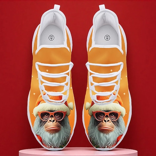 sneakers natalizie rosse da uomo con stampa di Babbo Natale: scarpe comode ed eleganti per lo shopping natalizio e le celebrazioni delle feste