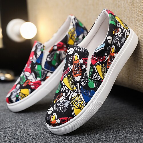 Sneakers da skate da uomo con stampa graffiti colorata: scarpe streetwear artistiche con lacci per giovani, festival e stile quotidiano
