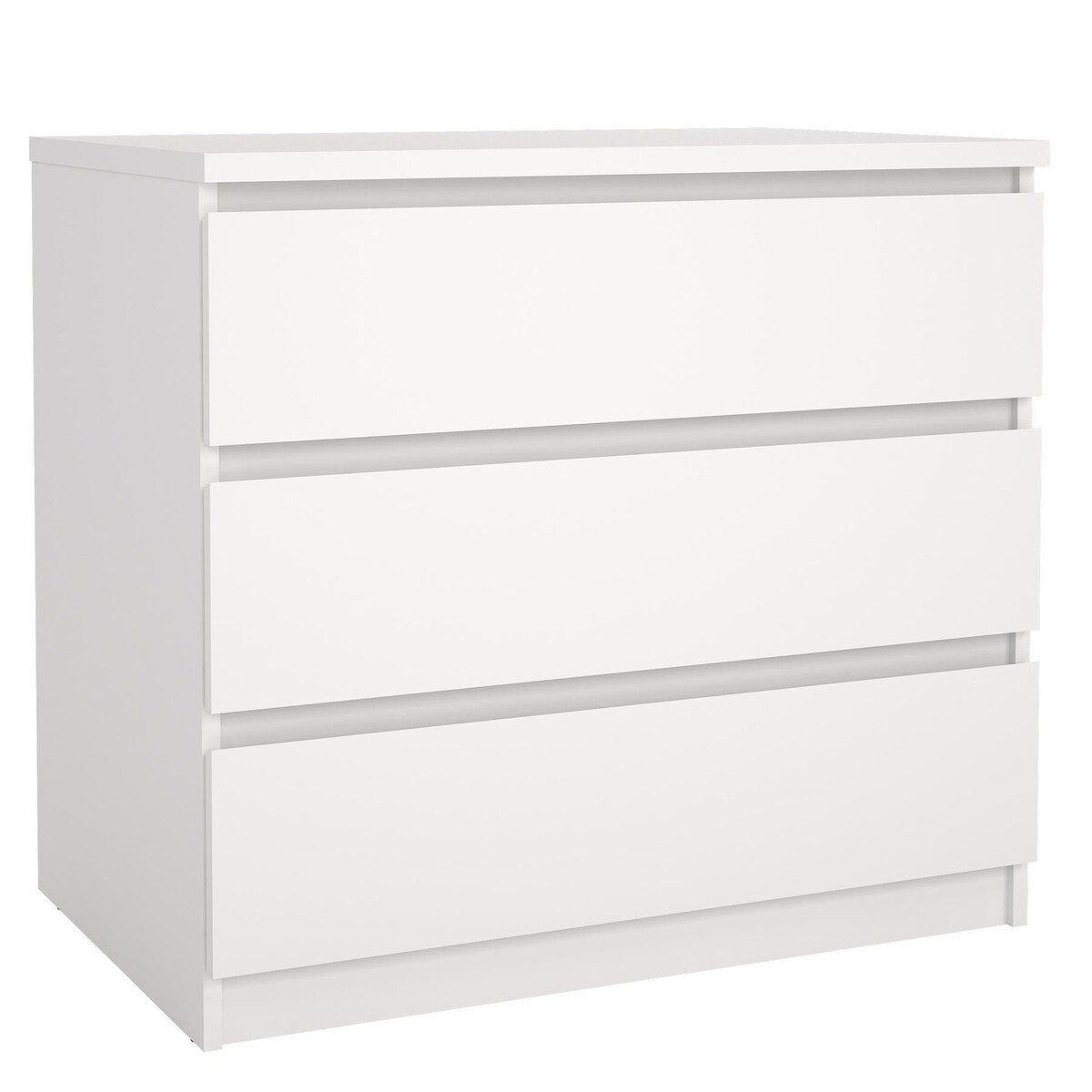 WellHome - Schlafzimmerkommode mit 3 Schubladen in der Farbe Weiß 77 x 50 x 71 cm - Sil White