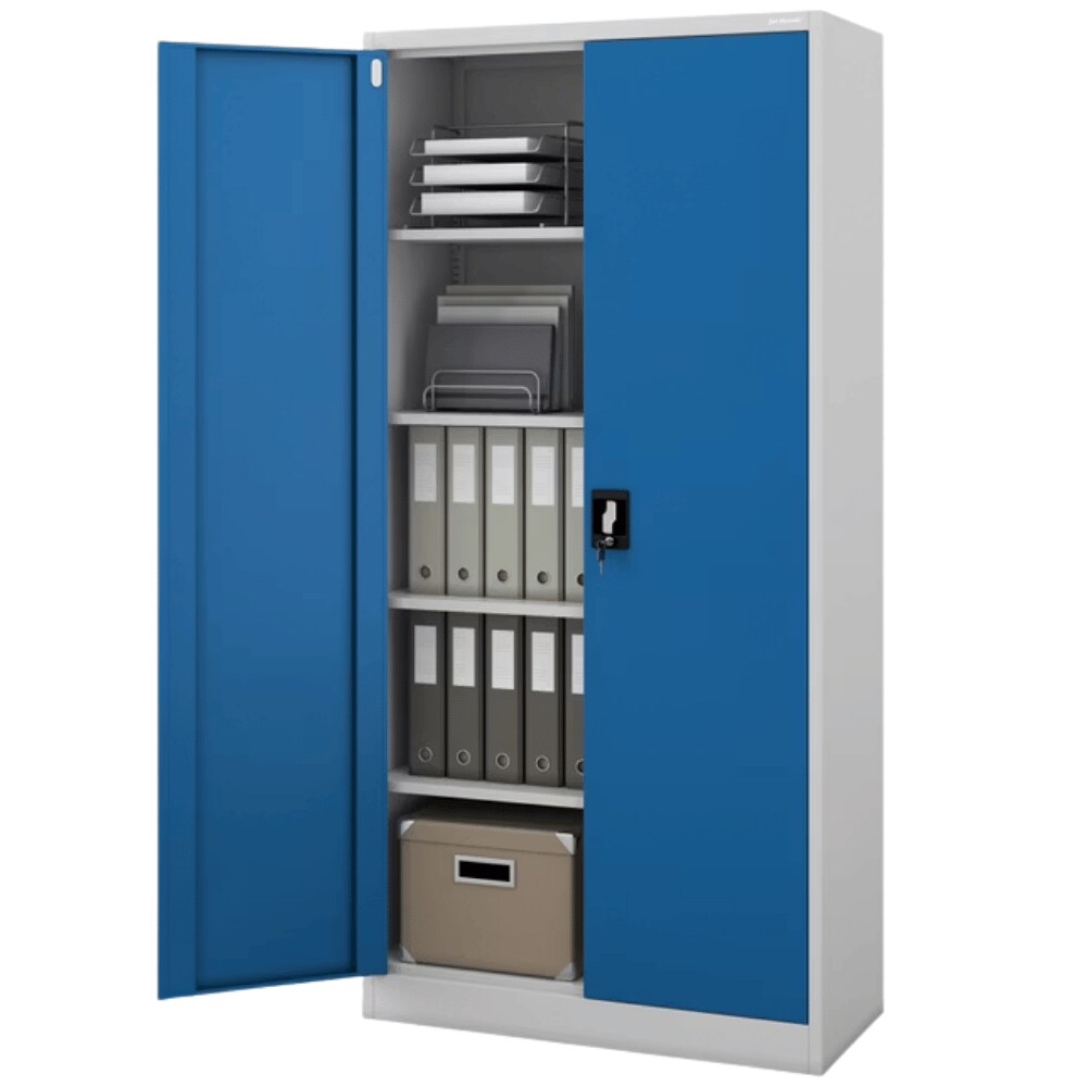 DELUKE Aktenschrank abschließbar KADO - 5 Ebenen, Flügeltüren | Metallschrank Werkstatt Büroschrank aus Stahl Werkzeugschrank, 185x90x40cm Grau-Blau