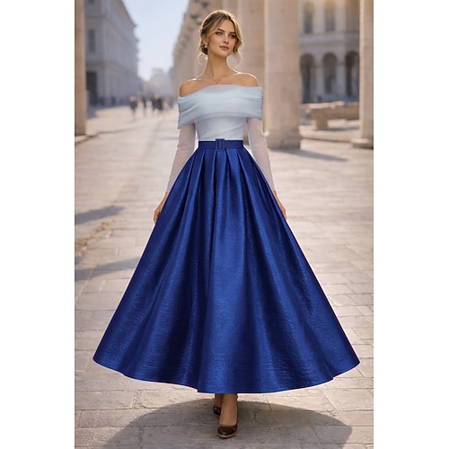 Linea ad A Lunghezza alla caviglia Abiti da Cocktail Abiti da festa Abiti per invitati a matrimoni Elegante Monocolore Manica Lunga Senza Spalle Matrimonio Formale Tasca Taffetà Tulle con Pieghe Tasca