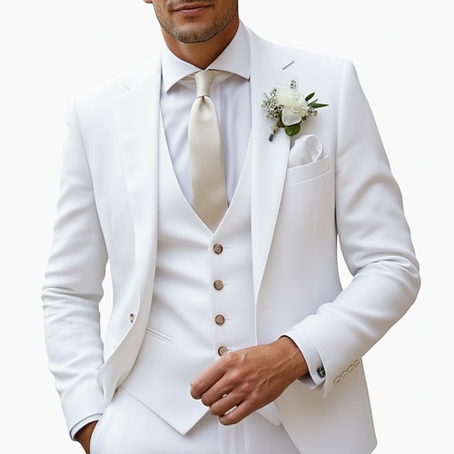 Uomo Matrimonio primaverile Matrimonio in Spiaggia Completi in Lino Bavero classico Bianco Rosa Formale Tinta unita Vestibilità su misura 3 pezzi Monopetto Due Bottoni