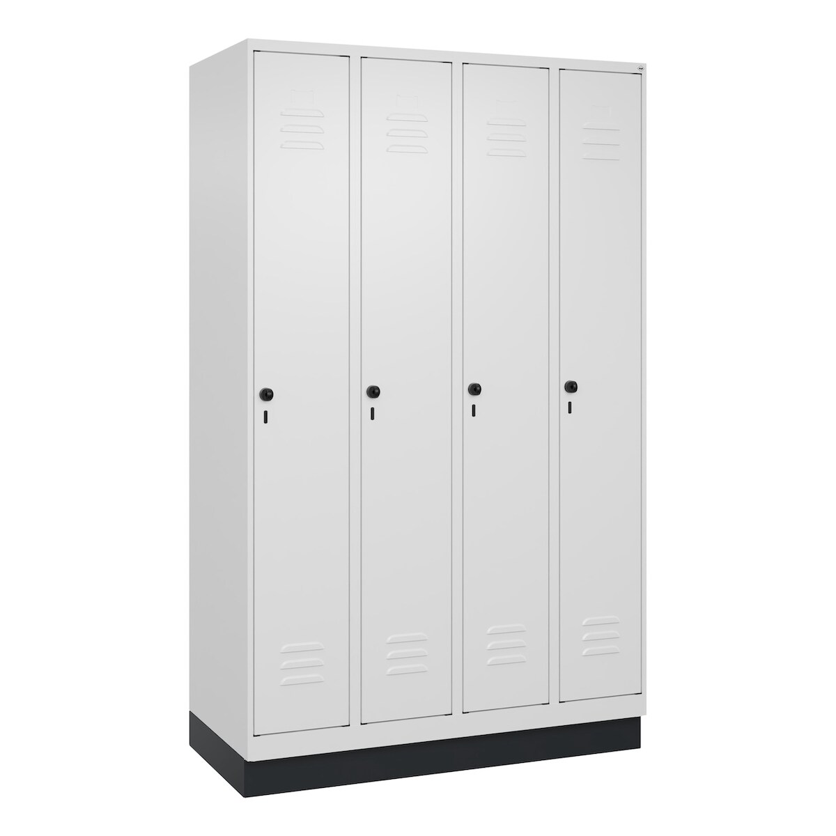 C+P Schließfachschrank Classic PLUS, Sockel, 4 Abteile, 1950x1200x500mm, 7035/70