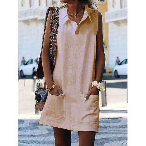 Per donna Blu Nero Bianco Estate Primavera Mini Abito Abiti in cotone e lino Abito Camicia Vestito Casual Essenziale Moderno Quotidiano Weekend Vestibilità comoda Semplice Colletto a Camicia