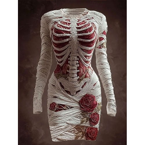 Per donna Mini Abito Attillato Vestito T-Shirt Abito aderente Vacanza Casual Feste Vestibilità regolare Grafico Teschio Manica Lunga Girocollo Bianco Primavera Autunno Inverno