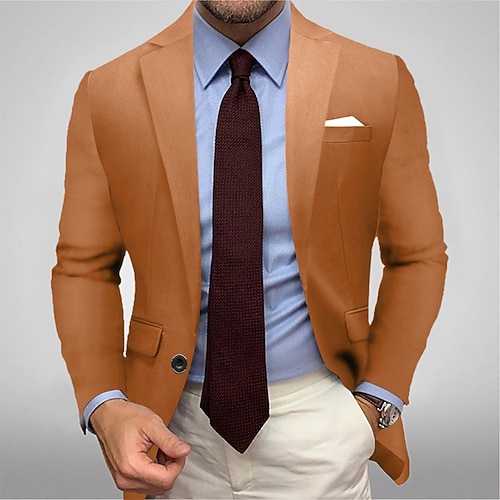 Per uomo Blazer di Lino Giacca Sportiva Colletto ad incastro Moda Casual Tinta unita Giallo Arancione Beige Vestibilità standard Monopetto Un Bottone