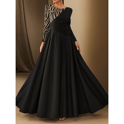 Linea ad A Lunghezza al pavimento Perline ricamate Abito Formale Abito da madre della sposa Abito da Sera Da principessa Abito formale Elegante Vintage Scintillante Manica Lunga Senza Spalle