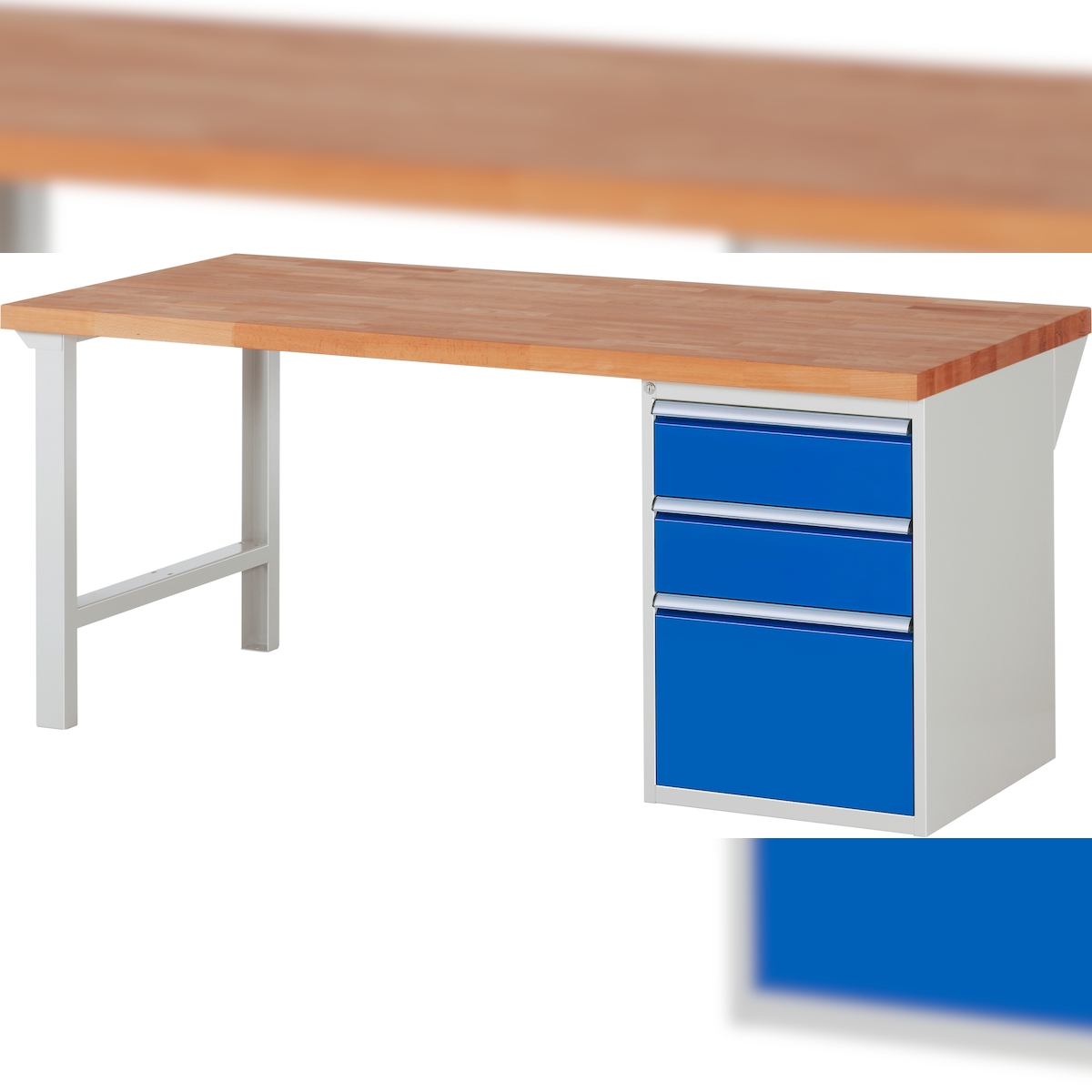 PROREGAL Werkbank Serie 7000 - Modell 7507 | HxBxT 84x200x90cm | 3x Schublade | Schubladenmaße 2x180 + 1x360mm | Lichtgrau | Arbeitstisch Werktisch