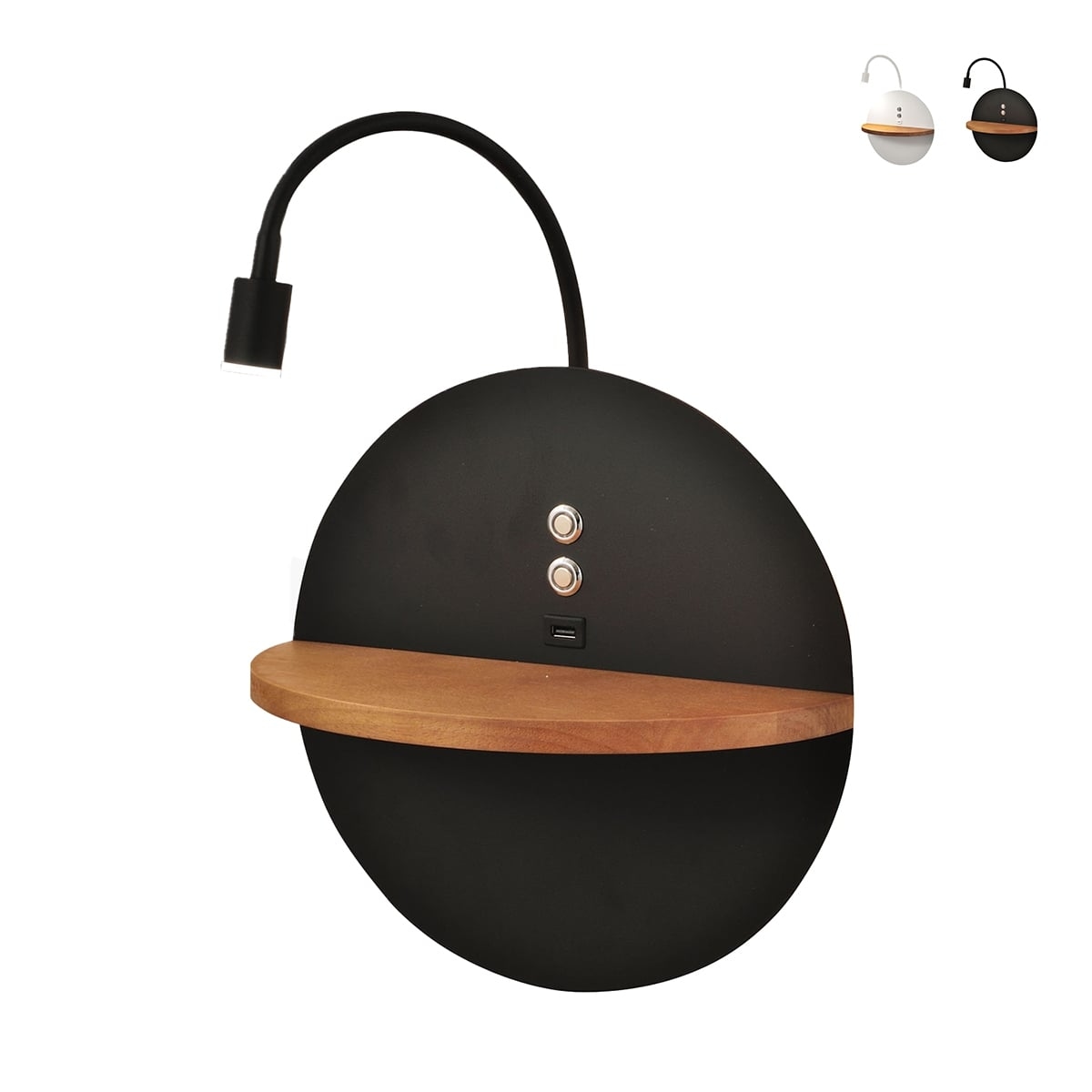 Dual - Wandleuchte mit Ablage und 15W LED-Leuchte Fabas Luce Touch Dimmer - Mattschwarz mit Holz integriertem USB