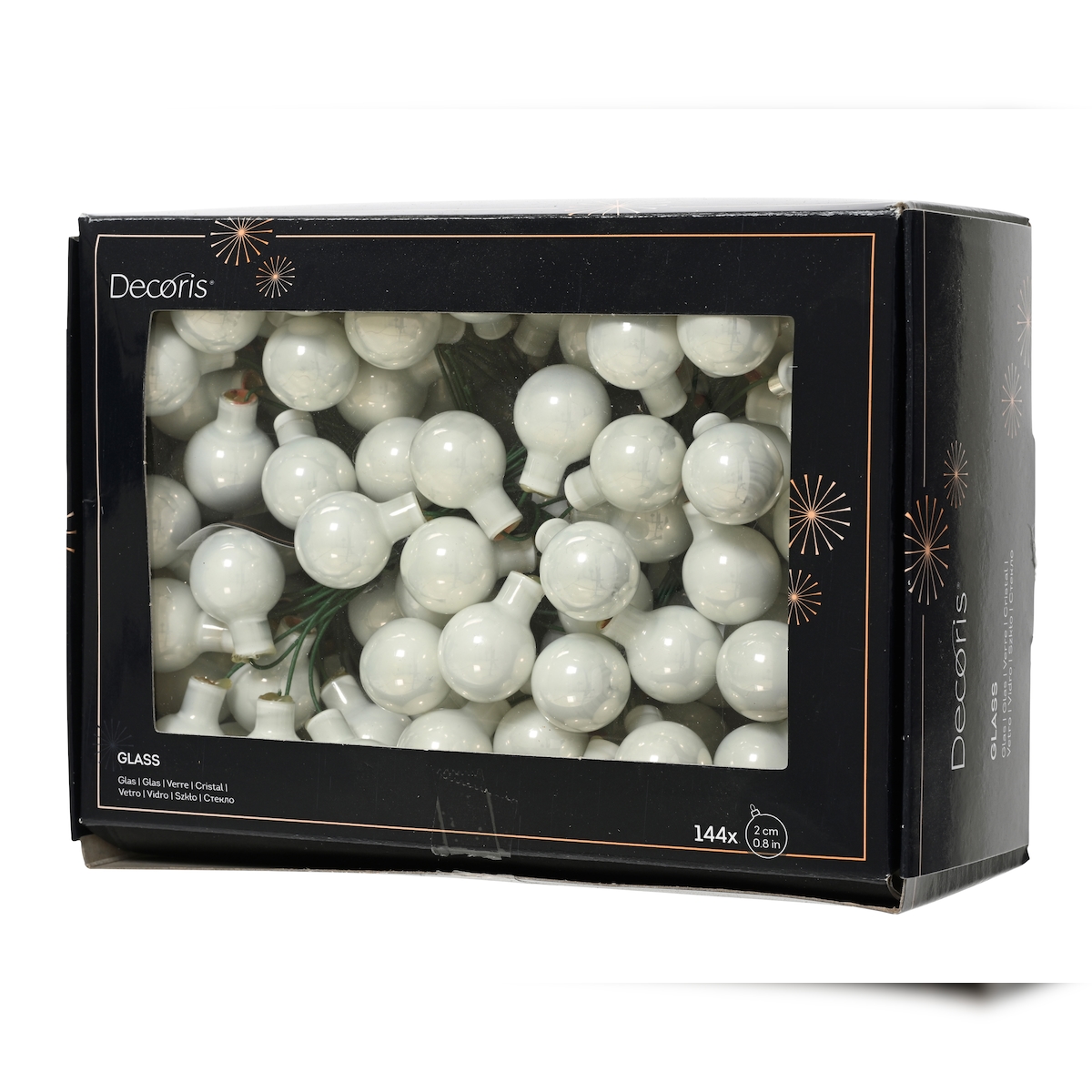 144 Weihnachtskugeln am Draht Glas 2cm mini Spiegelbeeren zum Basteln weiß