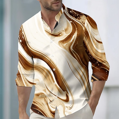 Per uomo Geometrico Marmo Arte liquida astratta Camicia Camicia con colletto alla coreana Manica Lunga Moda Casual Abbigliamento Quotidiano Ferie Primavera Autunno Collo alla coreana Colletto alla