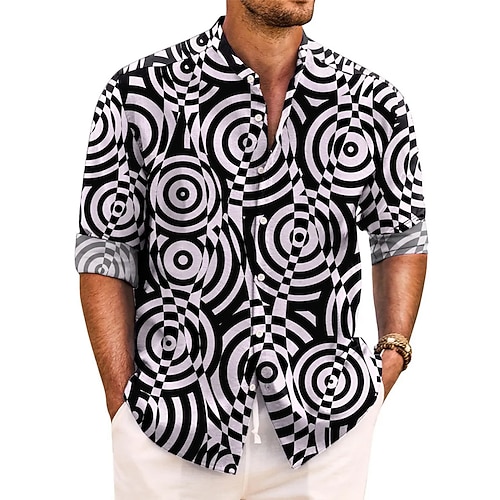 Per uomo Geometrico Sfumatura Linea Camicia Camicia con Bottoni Camicia con colletto alla coreana Manica Lunga Casual All'aperto Vacanza Quotidiano Primavera Autunno Collo alla coreana Colletto alla