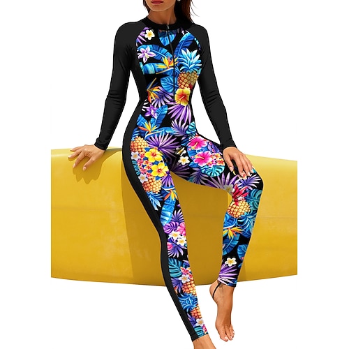 Per donna Costume da Bagno Rash Guard Floreale Protezione Solare UV UPF50 Asciugatura Rapida Manica Lunga Body costume da bagno Cerniera Frontale Surf Spiaggia Sport Acquatici Estate