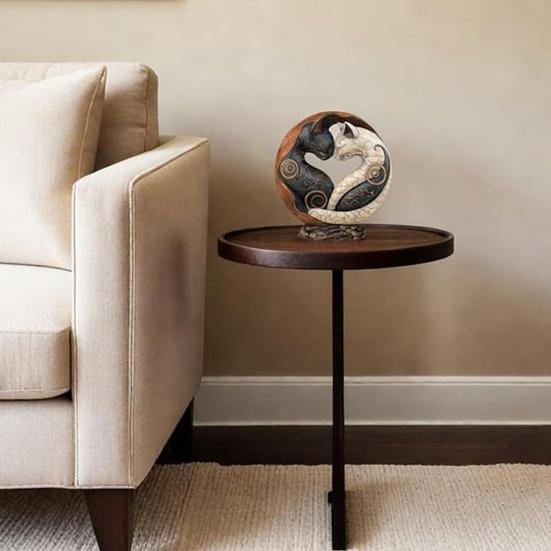 Yousheng 1/2Pcs Black White Cat Figurine Chinese Style Yin Yang Art Cat Statue Resin Sculpture Home Office Desktop Decoration Ornament
