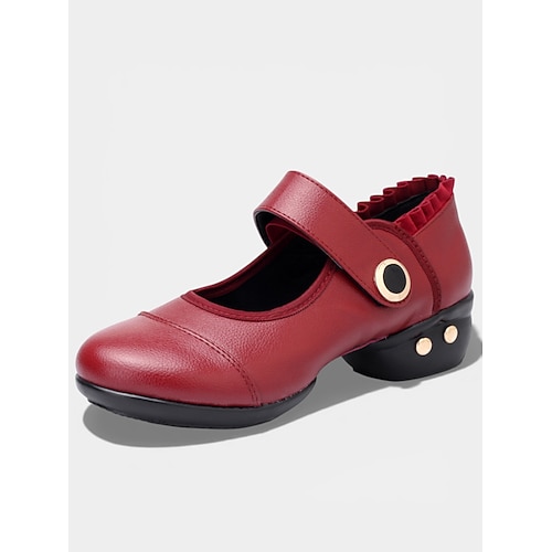 scarpe da ballo professionali da donna in pelle bordeaux e rete, scarpe da ballo da sala con tacco basso Mary Jane scarpe da ballo latino per pratica ed esibizione