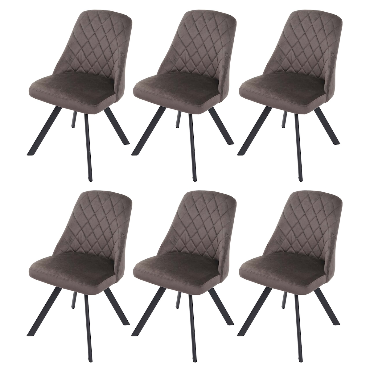 Mendler 6er-Set Esszimmerstuhl HWC-K25, Küchenstuhl Lehnstuhl Polsterstuhl, Metall Samt ~ dunkelbraun