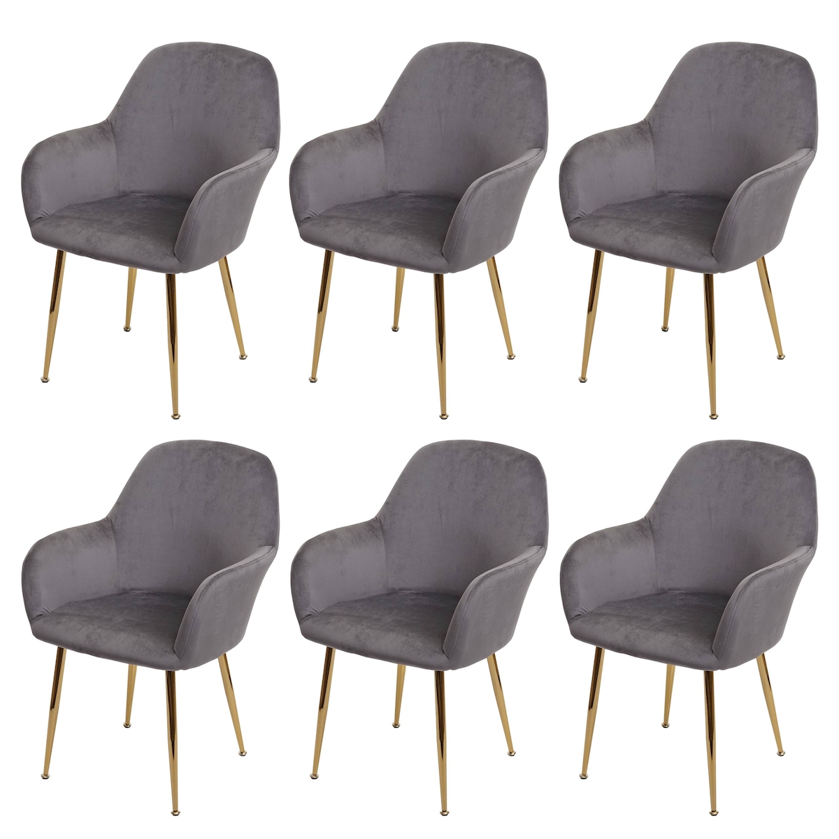 Mendler 6er-Set Esszimmerstuhl HWC-F18, Stuhl Küchenstuhl, Retro Design ~ Samt grau, goldene Beine