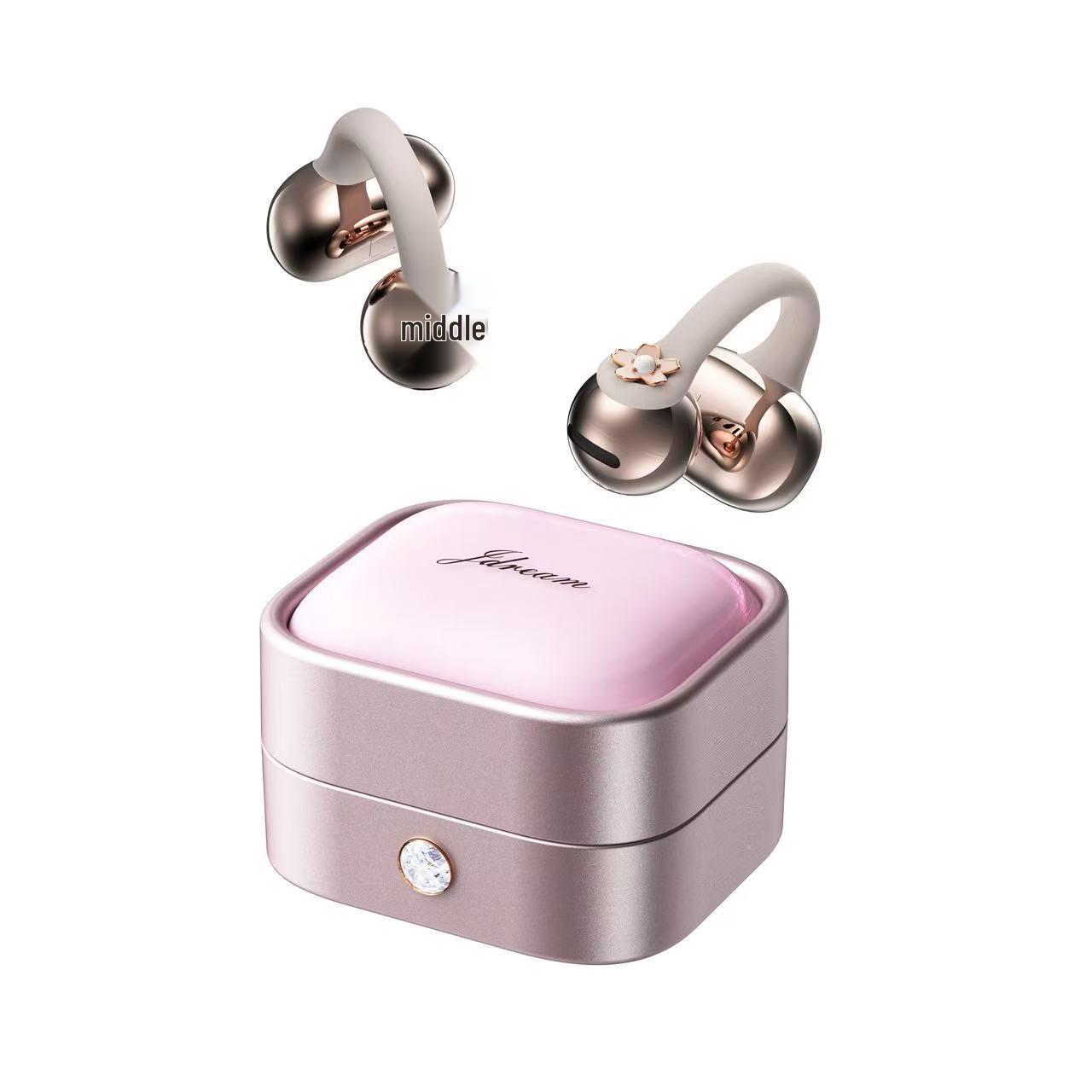 Limitierte Edition Rosa Diamant Ohrklemme Bluetooth Kopfhörer: Sicheres Design für langen Halt, Perfektes Geschenkset in Schmuckschatulle für Freundin