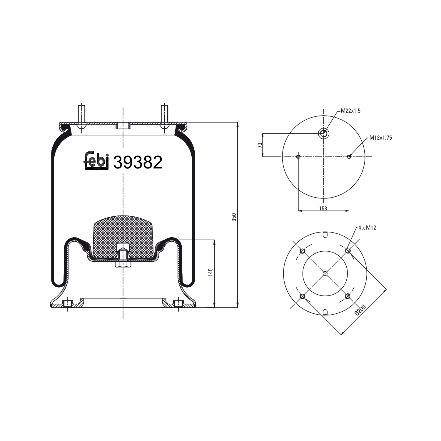 FEBI BILSTEIN Federbalg, Luftfederung 39382 Universal mit Kolben 200mm