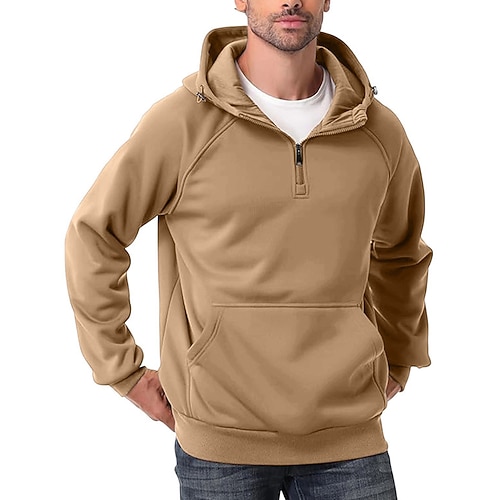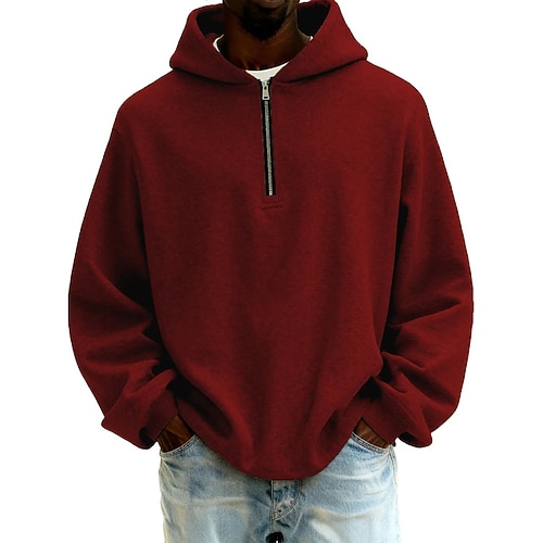 Per uomo Felpa con cappuccio Maglione Felpa con cappuccio e zip corta Rosso bordeaux Nero Verde militare Blu marino Cachi Con Cappuccio Semplice Tasca Sport Outdoor Casuale Quotidiano Streetwear