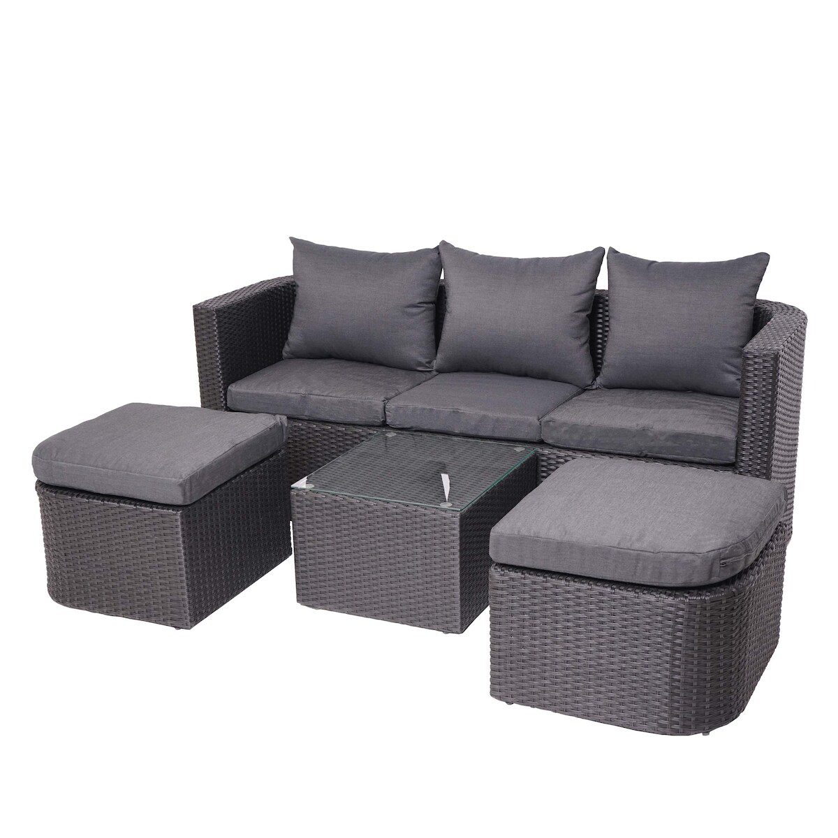 Mendler 3in1-Garnitur HWC-J37, Garten-/Lounge-Set Sonneninsel, Spun Poly Poly-Rattan MVG ~ anthrazit, Kissen dunkelgrau