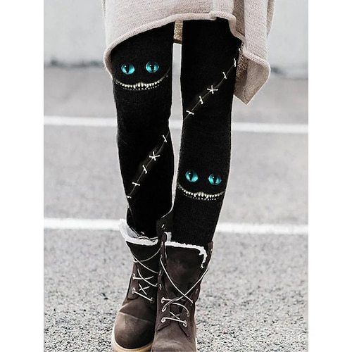 Leggings da donna Moda vacanze Vintage Lunghezza alla caviglia Vita alta Grafica Stampa Mostri Morbido Traspirante Elasticizzato Formale Outdoor Vacanze Nero Verde Grigio Ash Nero e Grigio Scuro Nero