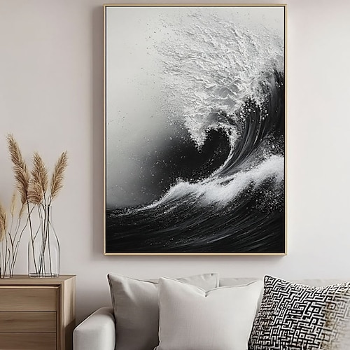 dipinto a olio dipinto a mano astratto strutturato onda del mare dipinto su tela fatto a mano dipinto onda dell'oceano bianco e nero opera d'arte minimalista nera dipinti per corridoio di casa moderna
