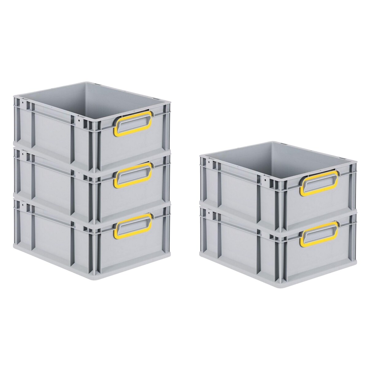 PROREGAL SparSet 5x Eurobox NextGen Color, HxBxT 17x30x40cm, 16 Liter, Griffe gelb zu, Grau, Eurobehälter, Box, Transportbehälter