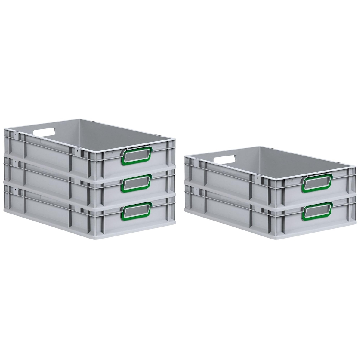 PROREGAL SparSet 5x Eurobox NextGen Color, HxBxT 12x40x60cm, 23 Liter, Griffe grün offen, Grau, Eurobehälter, Box, Transportbehälter