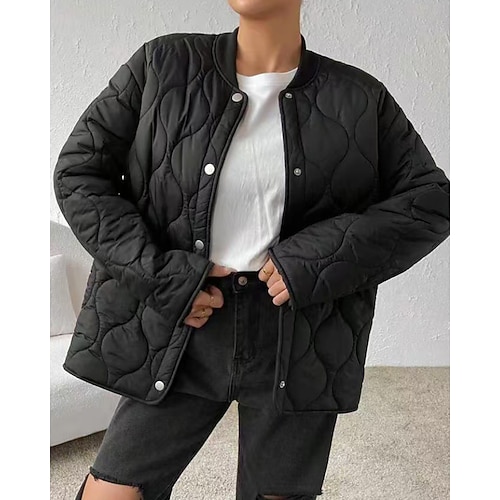 Per donna Giacca Piumino Giacca imbottita Giacca trapuntata Caldo Confortevole Tasca Bottoni Moda Casual Semplice Streetwear Casuale Abbigliamento quotidiano Uscire Monopetto Lungo Collo alla coreana