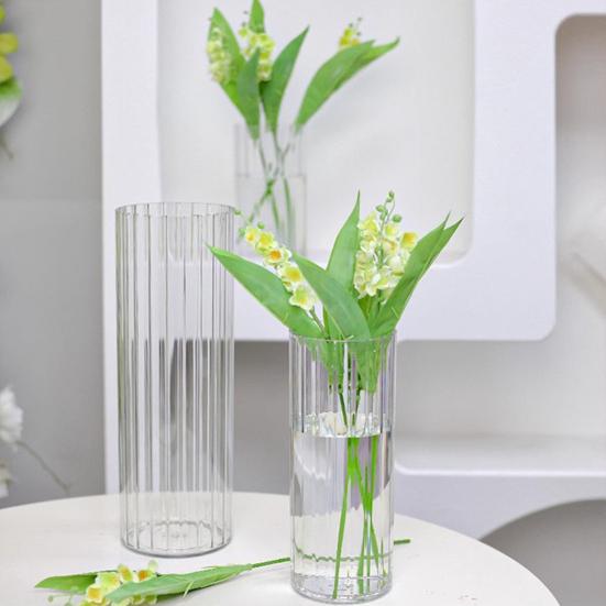 Akryl Klar Sylinder Blomstervase for Planter Bukett Ikke Knusbar Høy Riflet Vase for Midtpunkt Bryllup Hjem Dekor
