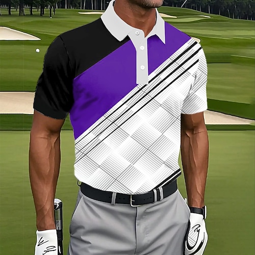 Per uomo Geometrico Golf Polo Sportivi Manica Corta Magliette polo Bavero Casual Athleisure Stampa 3D Bottoni Estate Blu Viola Verde