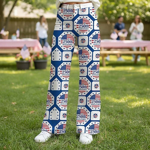 Americano 250 Retrò Vintage Anni '70 Pantaloni Pantaloni a gamba larga Hippie Disco Vita alta Costume Per donna Mascherata 4 Luglio Giorno dell'Indipendenza Semiquincentenario Adulti Pantaloni