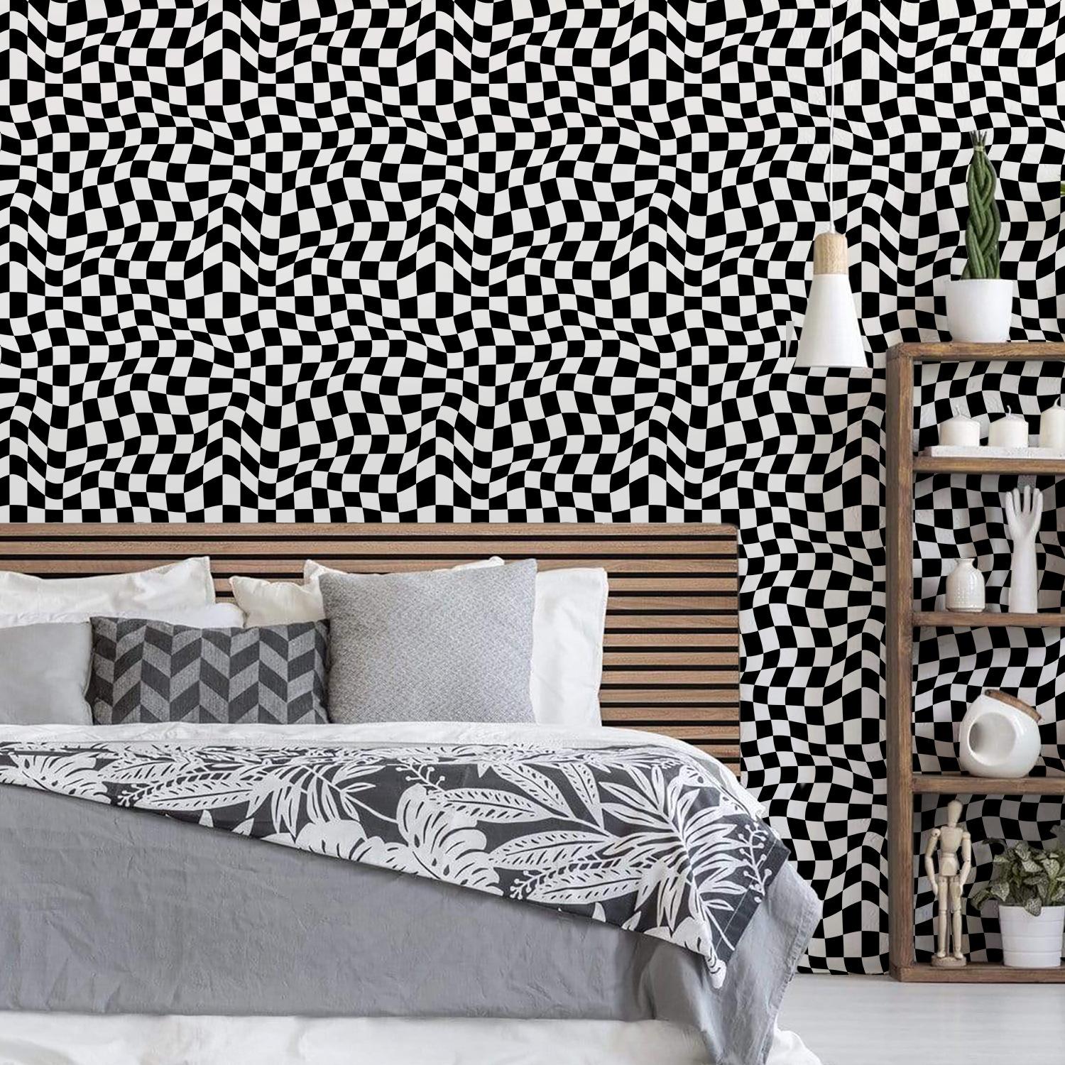 Karierte, selbstklebende Tapete zum Abziehen und Aufkleben, Heimdekoration, Schwarz-Weiß-Tapete, Schrank-, Regal- und Schubladeneinlagen