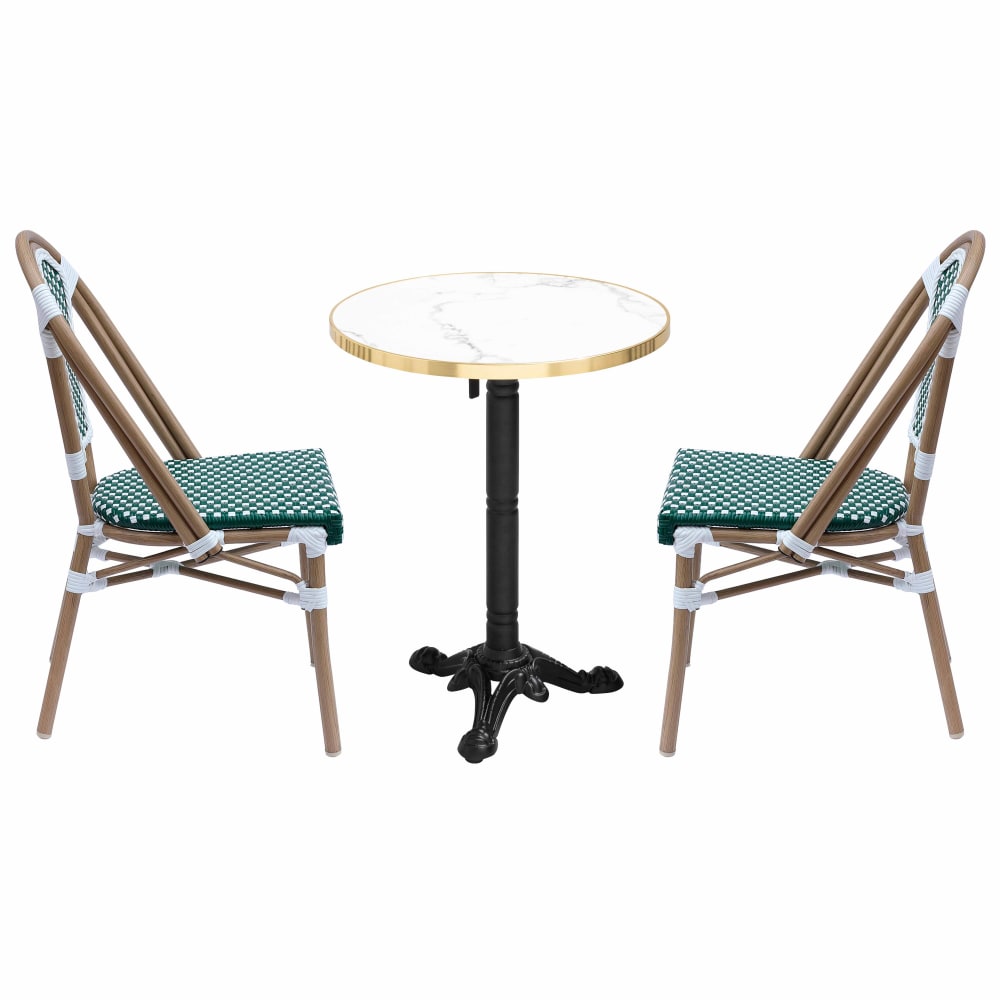 Set di tavolo da terrazza reclinabile in marmo bianco e 2 sedie verdi