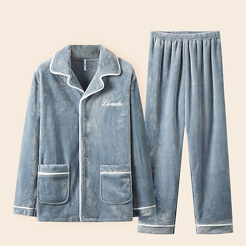 Per uomo Pigiami Set Pigiama Top e pantaloni del pigiama 1 Set Semplice Moda Elegante Classico Casa Quotidiano Da letto Pile Poliestere Calore Termico Comodità Morbido Bavero Manica Lunga Pantalone