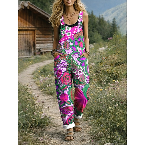 Per donna Salopette Attivo Floreale Senza Maniche Dritto con tasca Quotidiano Vacanza Vestibilità comoda Blu Giallo Rosso Estate