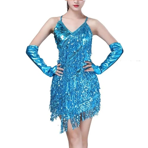 Danza Latina Vestito Nappa Giunzione Paillette Per donna Performance Allenamento Festa a Tema Senza Maniche Spandex