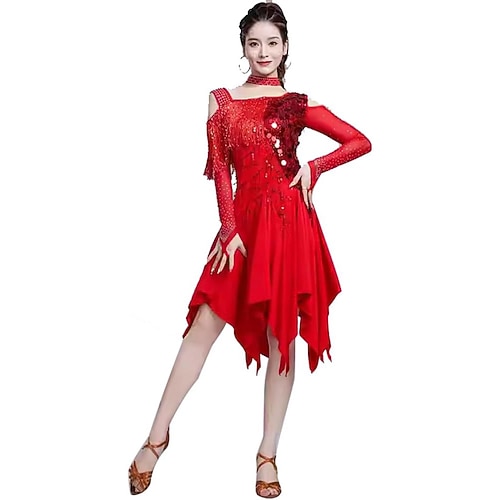Danza Latina Vestito Giunzione Paillette Per donna Performance Allenamento Festa a Tema Manica Lunga 100% Cotone