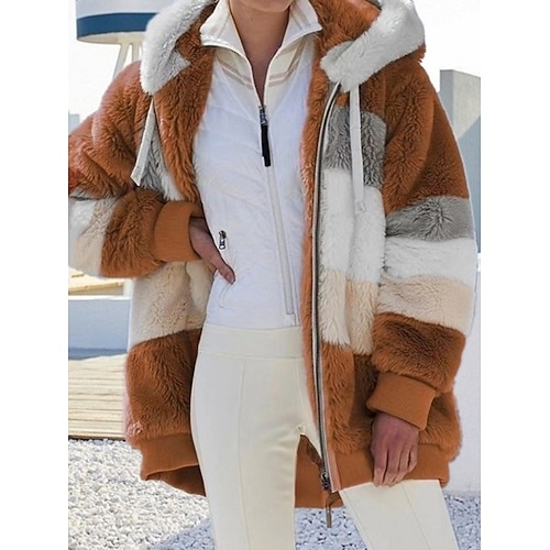 Per donna Giacca in pile Cappotto teddy Giacca con cappuccio Tenere al caldo Traspirante Cerniera Tasche In pile Informale Banda Da mare Strada Da tutti i giorni Per uscire Cerniera Standard Felpa